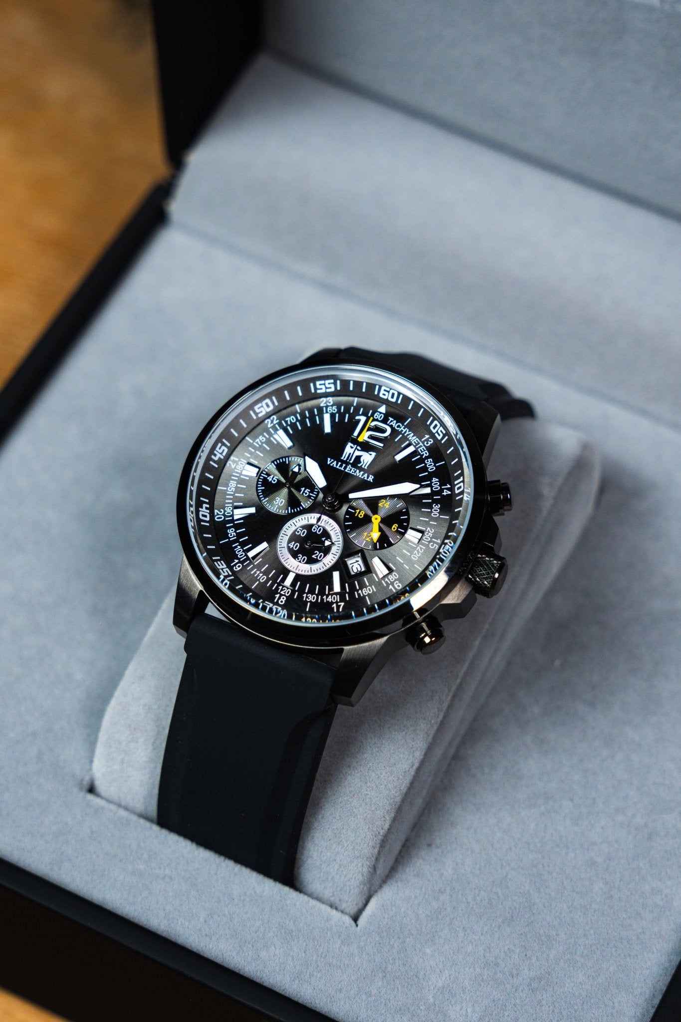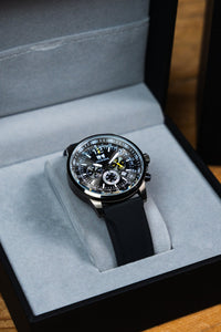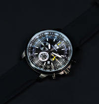 Un cronografo nato per chi vive le giornate al massimo. Il quadrante nero multilivello con contatori dedicati, scala tachimetrica e dettagli in contrasto regala subito un look tecnico e deciso, mentre la cassa in acciaio inossidabile enfatizza il carattere professionale dell’orologio.
