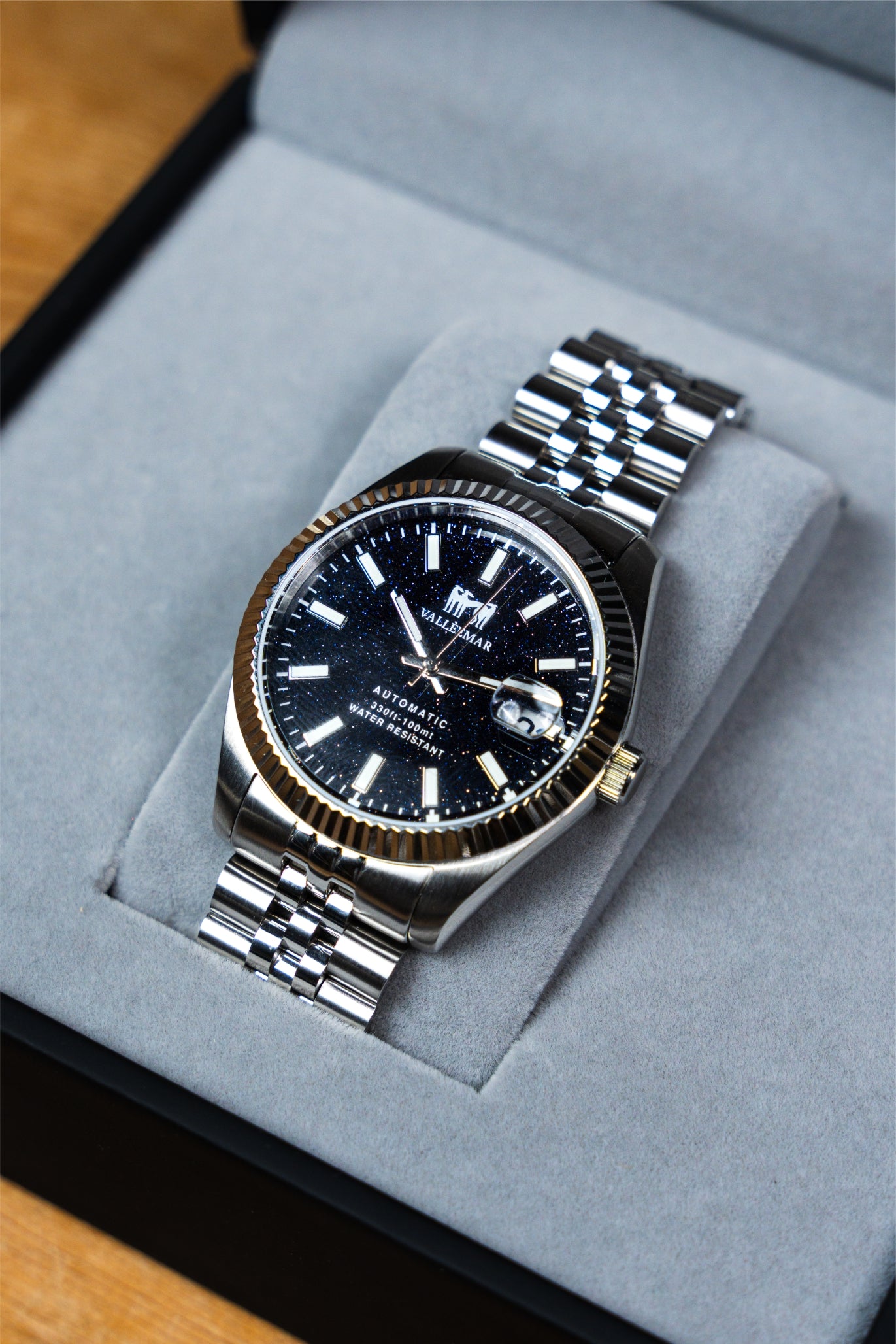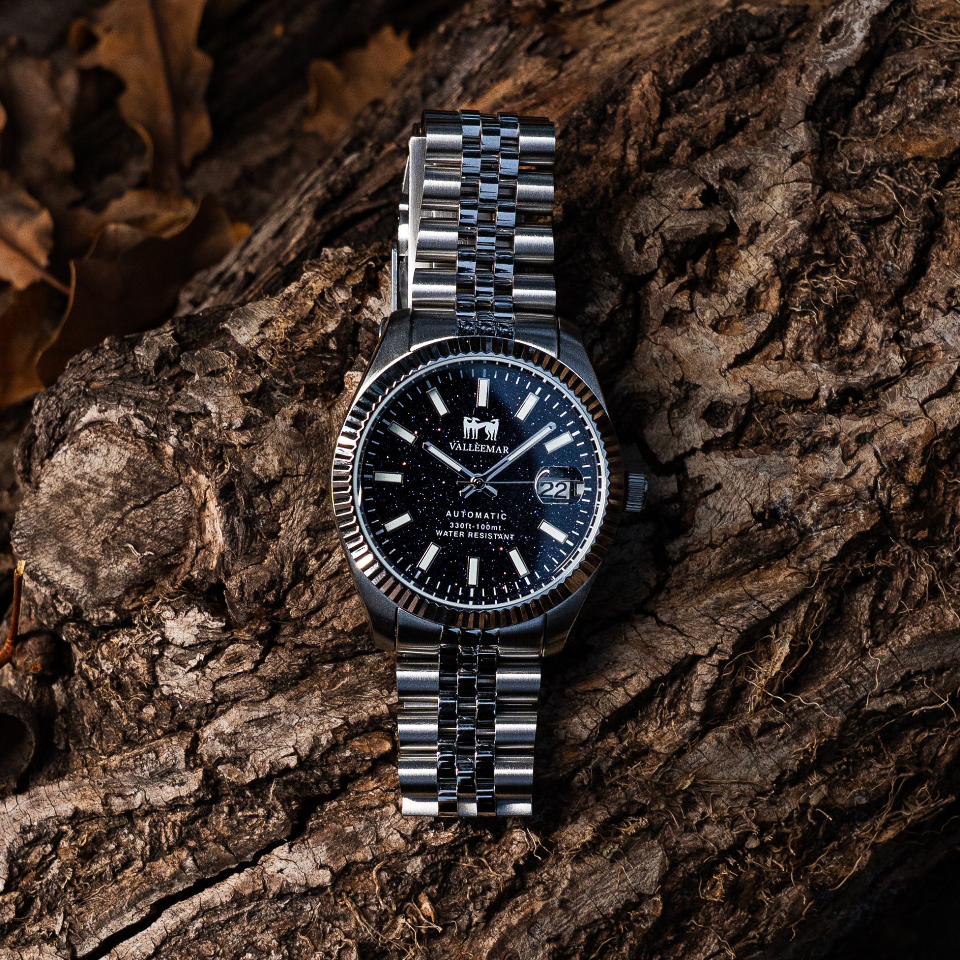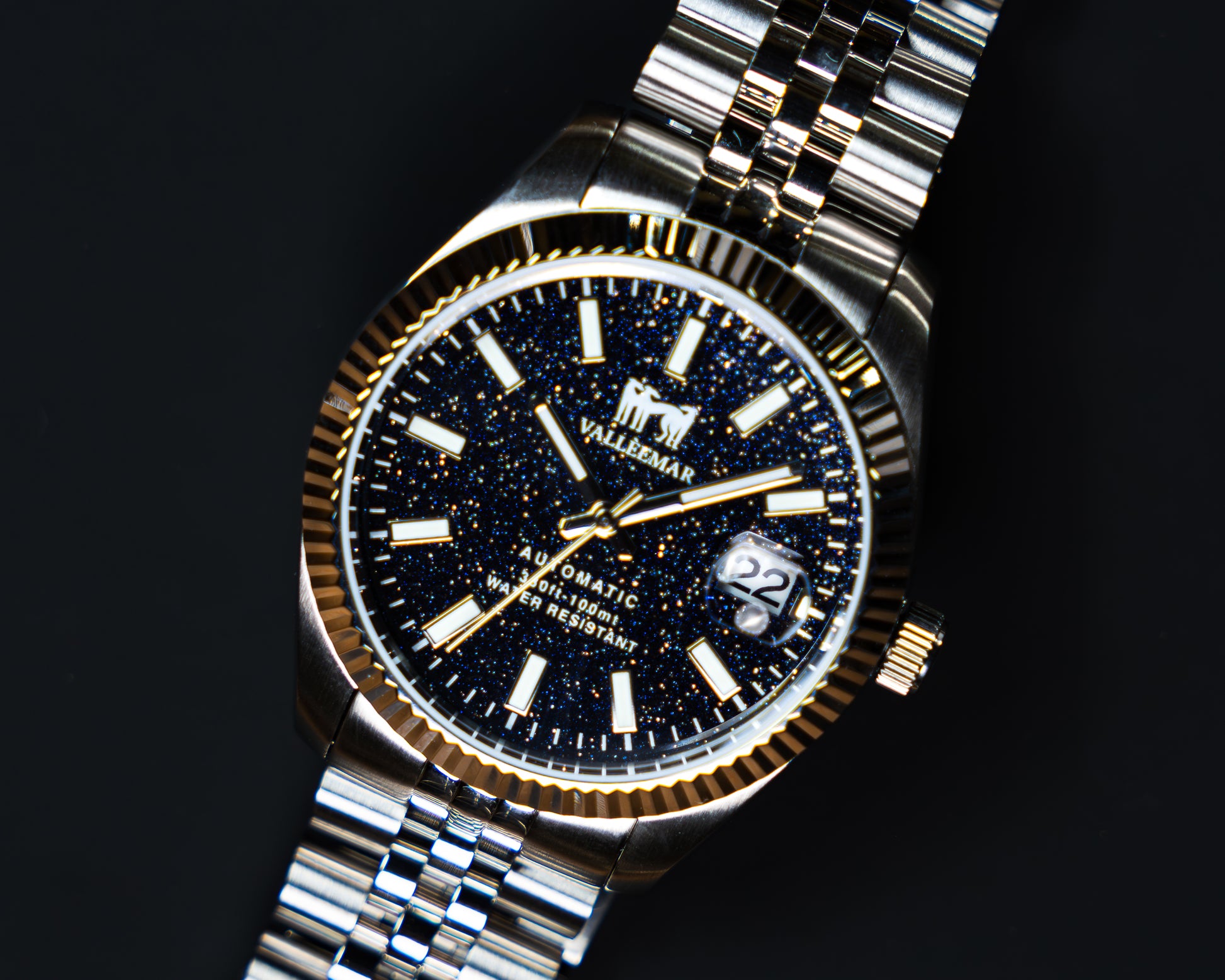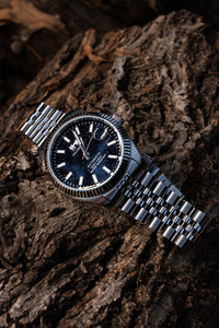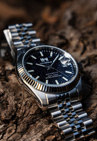 Un orologio pensato per chi vuole portare al polso qualcosa di davvero scenografico. Il quadrante blu notte effetto cielo stellato cattura la luce a ogni movimento, mentre il movimento automatico lavora silenziosamente sotto la superficie, pronto ad accompagnarti giorno dopo giorno.