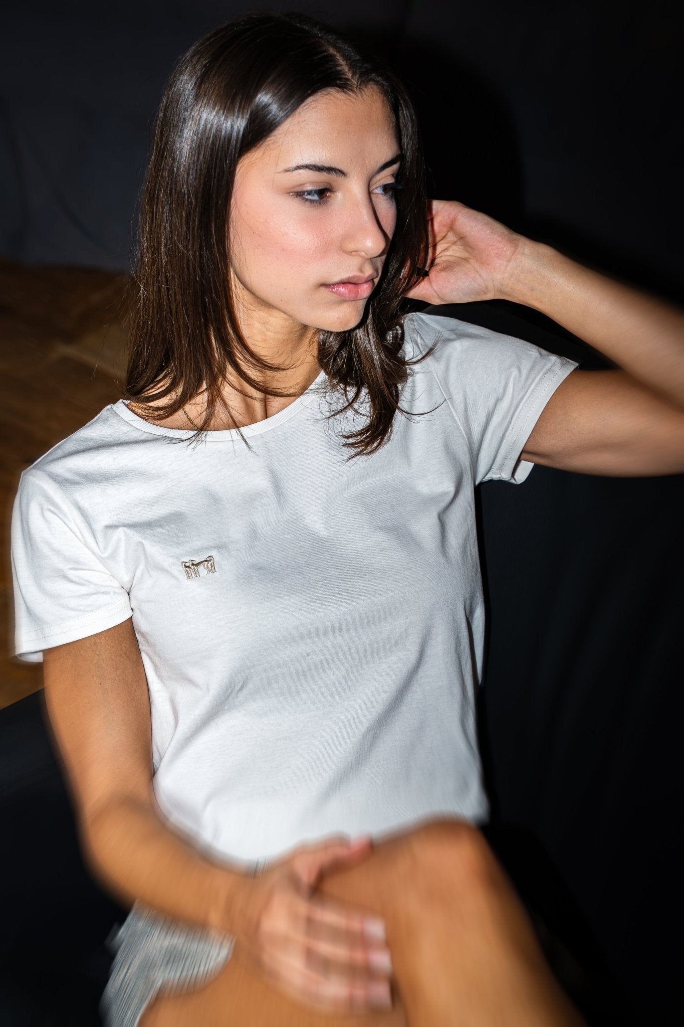 Minimalismo autentico: protagonista è il tessuto — il logo rimane in sottofondo, lasciando parlare la qualità.